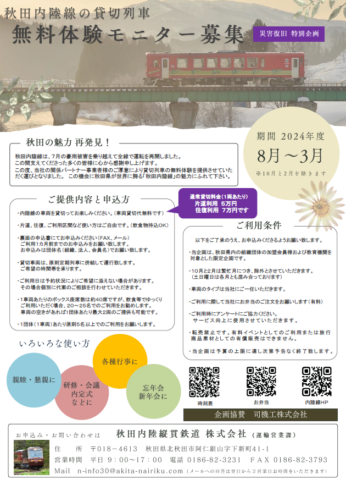 秋田内陸線の貸切列車 無料体験モニター募集について