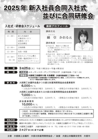 今春採用予定の新入社員を対象とした「合同入社式並びに合同研修会」を開催いたします。